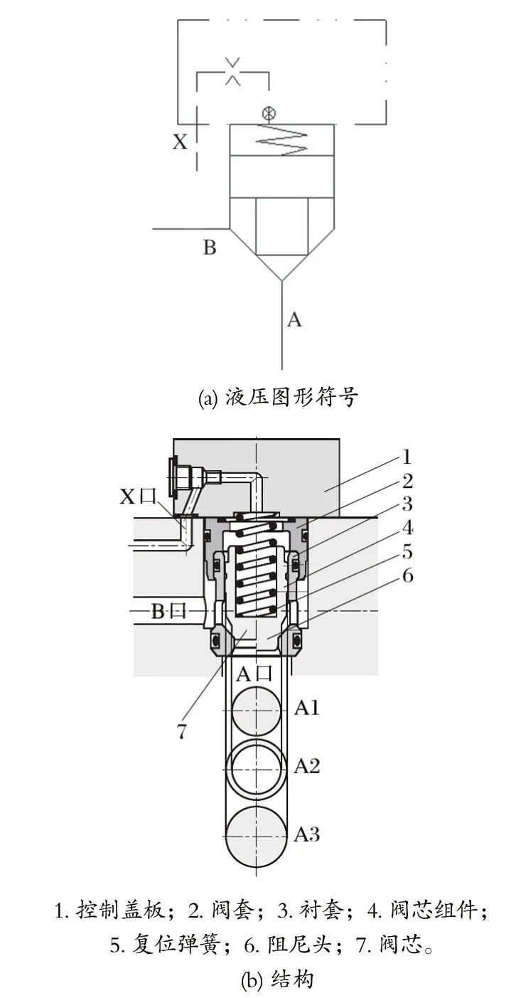 3 新型液動換向閥的設計 為了克服現(xiàn)有技術的不足,基于二通插裝閥,本研究設計提出了一種新型液動換向閥。