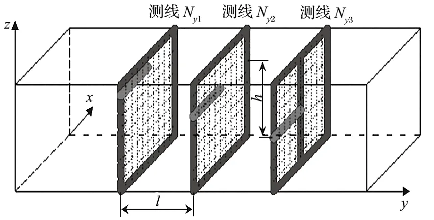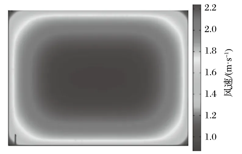 由于井下各點(diǎn)巷道過(guò)風(fēng)斷面大小不一、巷道表面平整度造成的風(fēng)阻大小不一等客觀(guān)現(xiàn)象,導(dǎo)致風(fēng)速監(jiān)測(cè)時(shí)常出現(xiàn)精度誤差。因此,通過(guò)改變布點(diǎn)方式,采取階梯網(wǎng)格方式實(shí)現(xiàn)密集布點(diǎn),將原有斷面進(jìn)行切割細(xì)分,然后分析斷面內(nèi)的風(fēng)流風(fēng)速分布規(guī)律,從而得出相對(duì)準(zhǔn)確的平均風(fēng)速在斷面內(nèi)的實(shí)際位置。經(jīng)過(guò)優(yōu)化后,將風(fēng)速傳感器進(jìn)行定點(diǎn)安裝,以此提升風(fēng)速采集的準(zhǔn)確性。階梯網(wǎng)格方式分析風(fēng)速分布規(guī)律如圖1 所示,矩形斷面實(shí)測(cè)風(fēng)速分布如圖2 所示。