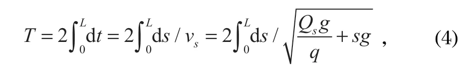 振動波周期法是依據(jù)振動波在鋼絲繩上的傳遞速度和鋼絲繩張力的關(guān)系,通過速度傳感器測量鋼絲繩振動波周期,得到傳遞速度,進(jìn)而計算出鋼絲繩張力。