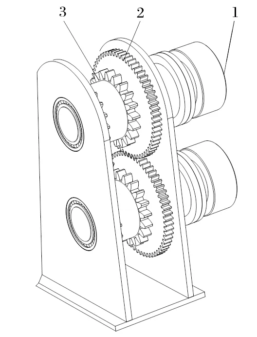 在現(xiàn)有研究的基礎(chǔ)上,本研究提出在連接兩鏈輪的軸上加一對同步齒輪。這樣不僅可以實(shí)現(xiàn)連續(xù)送繩,而且當(dāng)兩液壓馬達(dá)輸出的轉(zhuǎn)速不同步時(shí),可通過同步齒輪強(qiáng)制將兩軸轉(zhuǎn)速相同,從而實(shí)現(xiàn)兩鏈輪轉(zhuǎn)速同步,避免鋼絲繩打滑等問題。但這樣會(huì)導(dǎo)致同步齒輪受到較大的沖擊,如受到來自同步齒輪的相互擠壓,或液壓馬達(dá)輸出轉(zhuǎn)矩不穩(wěn)定時(shí)對齒輪的影響等,因此需要對同步齒輪進(jìn)行進(jìn)一步的分析。