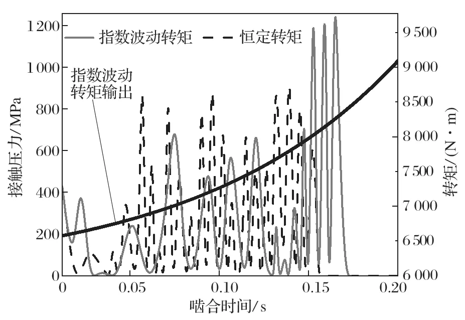圖11 恒定轉(zhuǎn)矩與指數(shù)波動轉(zhuǎn)矩接觸壓力的對比
