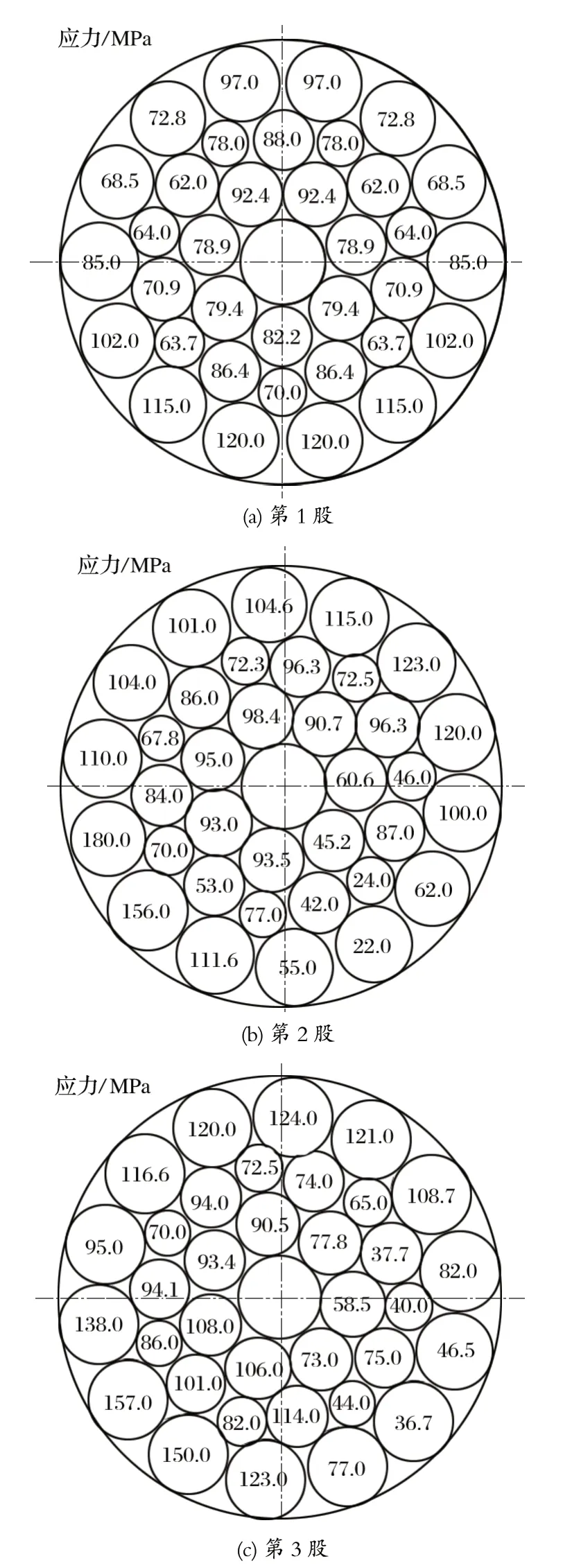 圖4 右側(cè)同向捻外股鋼絲繩彎曲應(yīng)力分布